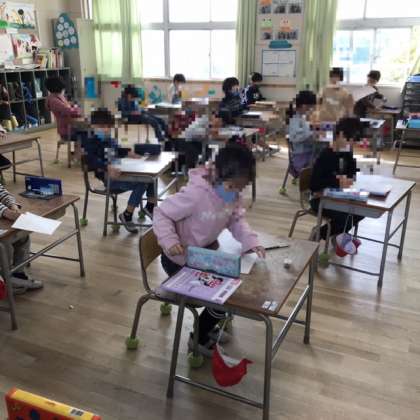 今日の1時間目には、1年生は漢字テストをしていました。2年生は算数科「ながさ」の学習です。どちらの学年もとっても集中していました。