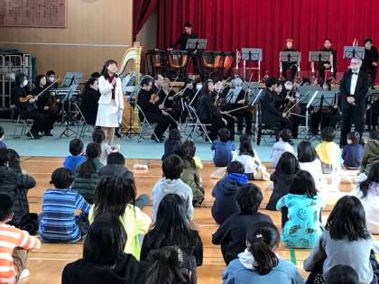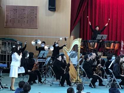 演奏の合間に、楽器の紹介です。弦楽器、木管楽器。金管楽器、打楽器と順番に紹介されました。