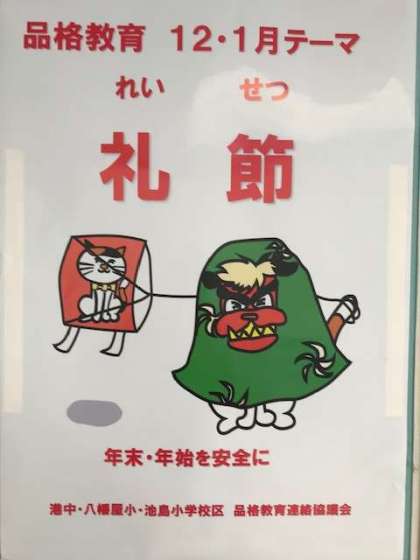 12月、1月の品格教育のテーマは、「礼節」です。礼儀と節度」を意味する言葉です。 「礼節」は社会のきまりにかない、また社会生活を送るうえで必要な秩序やマナーを保つために行うべき行動や作法を指します。 社会に出ると人間関係や上下関係などが生まれてきますが、「礼節」とは人として、また成人した大人として遵守すべき行動となります。