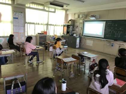 3年生の算数科「分数」では、もとにする量がわかることが大切です。一通り学習した後、1mの四分の一の長さを動画で確認していました。
