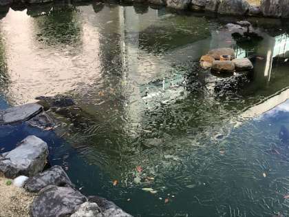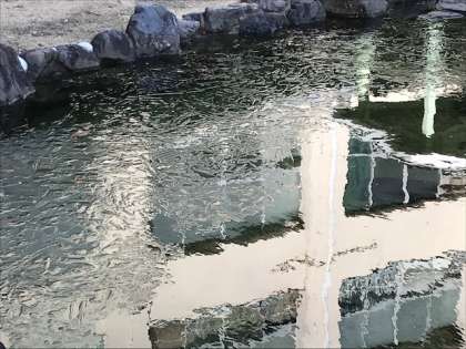 今季最大の寒波が池島小学校にもやってきました。中庭の池にも氷が貼っています。