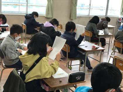 1時間目は国語です。どの学級の子どもたちも問題文をよく読んで取り組んでいます。
