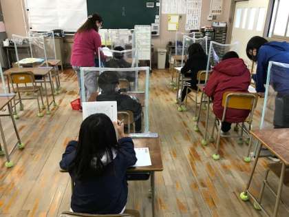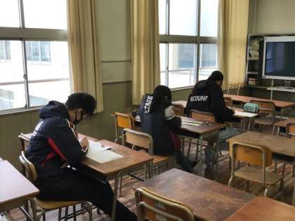 ひまわり学級でも先生からていねいに説明を受けて試験に取り組んでいます。