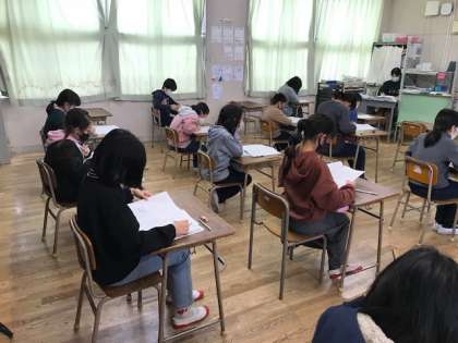 3時間目は社会科、4時間目は質問紙にこたえます。各学年の学習内容に応じた、すこし応用の必要な問題です。