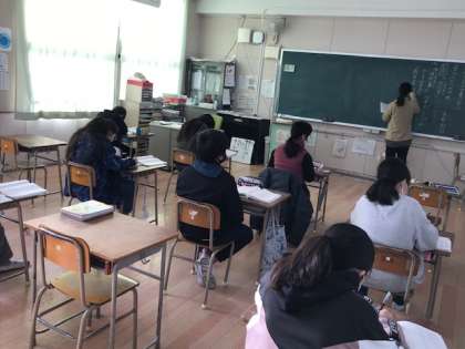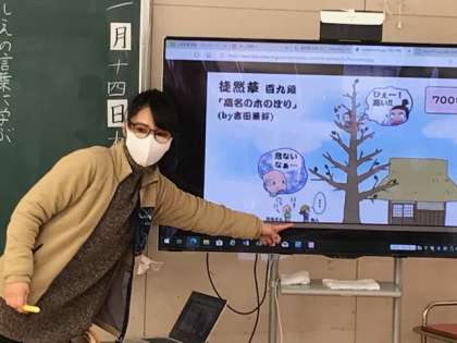 6年生が国語科で古典の学習をしていました。先生がICTを使ってわかりやすく解説していました。子どもたちは言葉を大切に学んでいました。