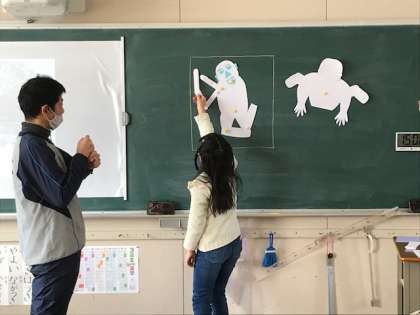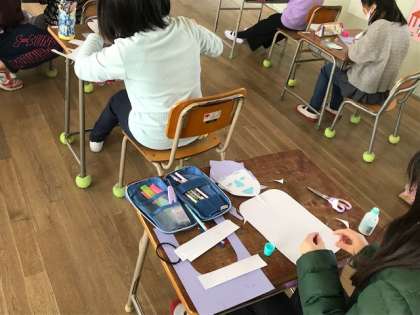 3年生の図工科の時間では、紙版画の下絵を作っていました。人の動きをよく観察して大きくて動きのはっきりした作品を作れていました。