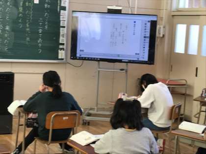 5年生が短歌を作るための構想に頭をひねっていました。連想する言葉からマッピングの手法で連想を広げていきます。どんな短歌ができるか楽しみです。