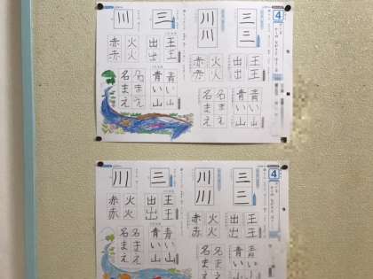 1年生の書き方です。漢字もひらがなもこんなにしっかりした字になっています。子どもたちの成長はすばらしいです。