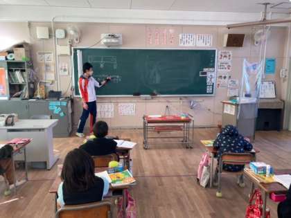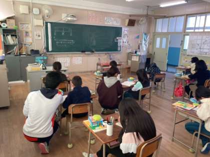 3年生が理科の実験をしていました。磁石どうしはくっつくか?どんな時か?磁石を操作しながら考えます。