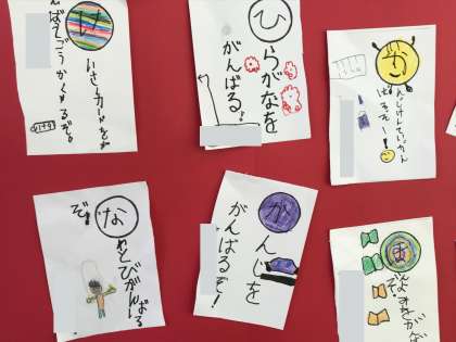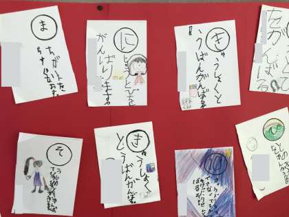 1年生の教室に、みんなの目標を掲示していました。1人1人いろいろな目標をもって努力をしているのですね。きっとすばらしい成果が出ますね、