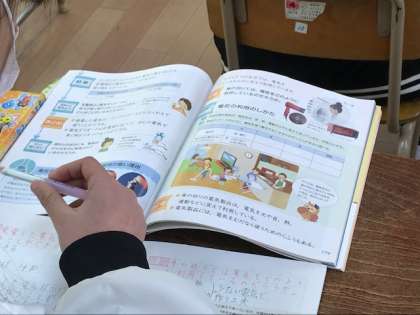 6年生が理科の電気について学習していました。電気エネルギーを何に変換して活用しているのか、より効率よく活用するにはどうすればよいかを考えていました。
