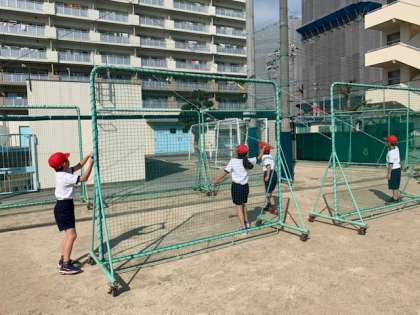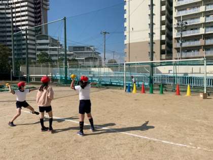 的に当てて倒すには力強い投げ方をします。ロープについたバトンを遠くに投げるにはまっすぐ投げないと届きません。