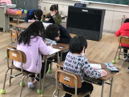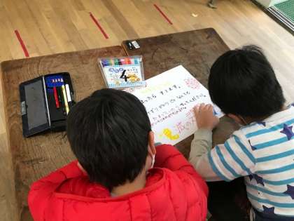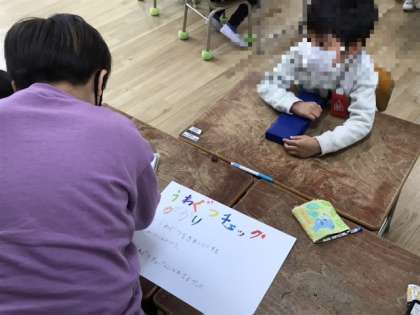 1年生が係活動をしていました。それぞれの係がどんな仕事をするのかを決めてカードに書いていました。子どもたち自身で考えたいいアイデアがたくさんありました。