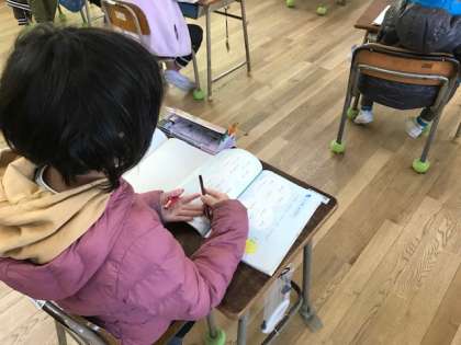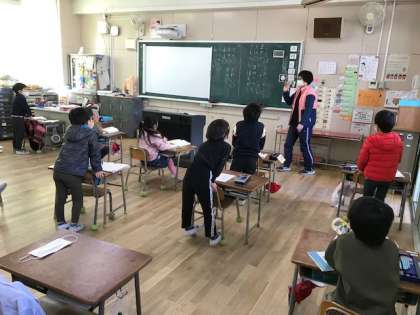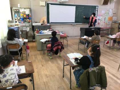 1年生の国語科の時間に子どもたちが探しているのは語尾に「い」のつく言葉。高い、重いなどの様子を表す言葉を見つけて欲しいのですが、ほらがい、けいたい、などが出ました。しかし、子どもから「それはものの名前やからちがう。」と意見が出ていい感じにまとまりました。