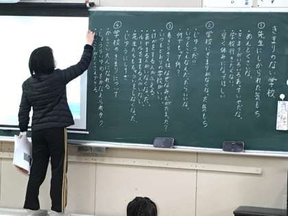 2年生の道徳科の時間に「きまりのない学校」を読んでいました。決まりがなくなったらどうなるの?決まりがあることで楽しい学校生活を送れるそうです。