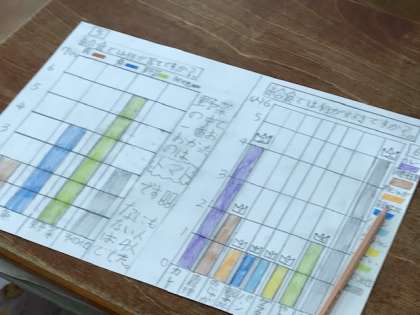 4年生が自作のアンケートの結果を集計してグラフを作っていました。てっきり算数科の学習だと思ったのですが、国語科の学習だそうです。「調べたことを報告しよう」と言う学習です。