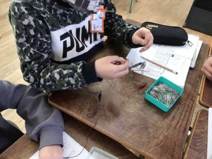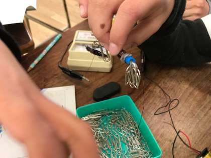 5年生が理科で「電磁石」について調べていました。電流の強さと磁石の強さが関係しているのか?回路になっているのか?いろいろ調べていました。