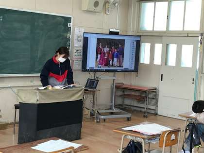 6年生が社会科の時間に日本と韓国の関係について調べていました。文化や言語などから生活様式まで、伝統的なものについて学びます。