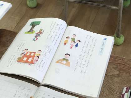 2年生は、国語科の「ことばを広げよう」の学習をしていました。教科書の絵を見て、見つけられるだけ情報を集めます。言葉をたくさん出さないといけないので難しいですが、静かに相談しながら学習していました。