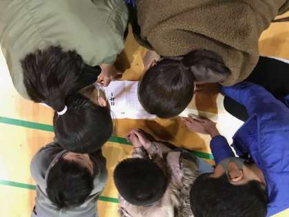 6年生の子どもたちはチームの別れて熱心に謎解きに取り組みます。7つの謎がなかなか解けません。