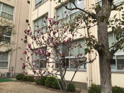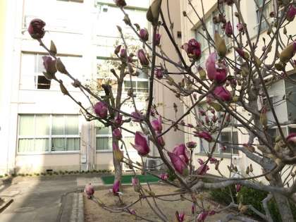 最近の暖かさのせいか、学校のモクレンが開き始めました。花の香りに誘われてヒヨドリもやって来ます。春はそこまで来てます。