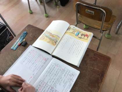 4年生の国語科の文学教材の中でとても美しい内容の「世界一美しいぼくの村」です。子どもたちほ、文章をじっくり味わいノートにまとめていました。