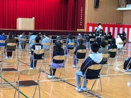 5.6年生合同での卒業式の練習です。高学年として、どんな姿で卒業式を迎えるのか、凛とした空気の中で練習します。従来とは座り方や並び方が変わりますが、心構えは変わりません。