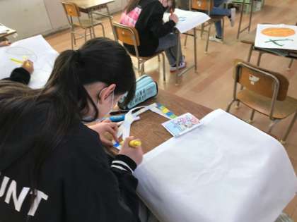 6年生が作品袋のデザインをしていました。いよいよカウントダウンですね。