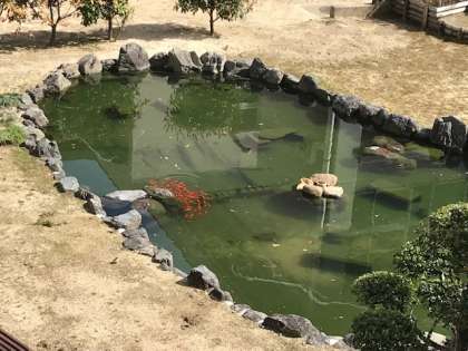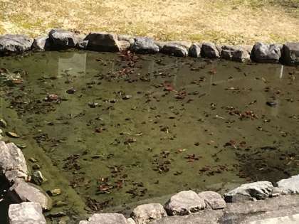 中庭の池を見ると、金魚が元気に泳ぎ出しました。冬の間は、隠れていたのですが、列を組んで泳いでいます。睡蓮も新芽を出しました。水温が上がり出したのでしょう。