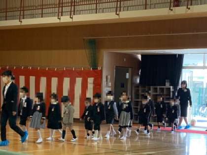 新入生14名は元気に入学式に出席しました。大きな椅子に1人ずつ座り、起立礼やお話を聞く態度はとても上手です。