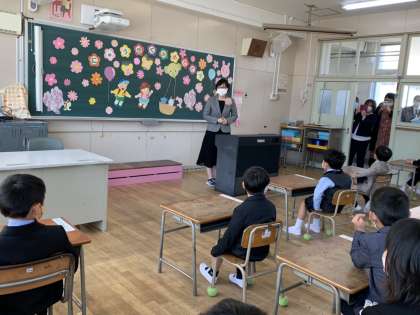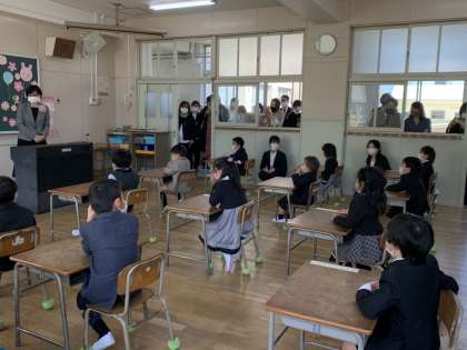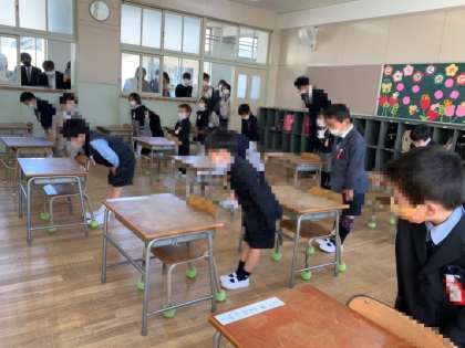 教室に入ってからは、担任の宋先生のお話をしっかり聞いて、礼の仕方も習いました。明日からの学校生活が楽しみです。