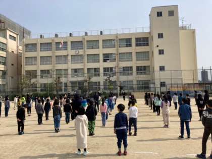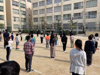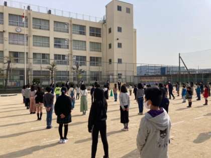 今年の始業式は、「蔓延防止等対策措置」を受け、運動場で行いました。初めてのことですご、子どもたちはきちんと整列し、お話を聞けました。最初に新転任の教職員の紹介です。新たに5人の方が来られました。