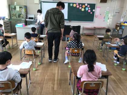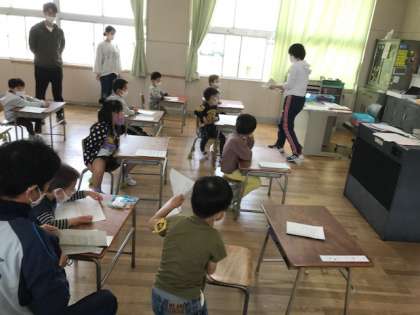初めての教室での時間です。宋先生のお話をしっかり聞いて、たくさんの手紙をきれいにおりました。折り紙は得意だそうです。