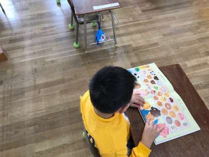 1年生も今週は3日目となりました。朝の準備が終わりランドセルを片づけた後、読書をする子、ぬりえをする子、自由帳に絵を描く子とさまざまな過ごし方ができていめす。