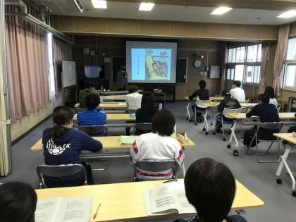 15日に教職員の研修会を開きました。梅花女子大学の伊丹教授にお越しいただき、支援教育の勉強をしました。子どもの困り感をどのように少なくしていくのかを学びました。