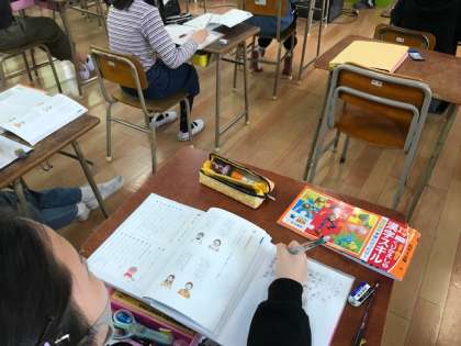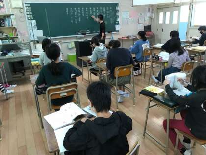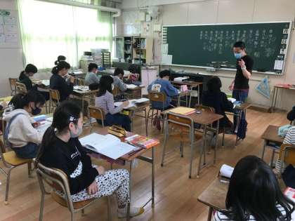 6年生は、漢字の習得の学習です。既習の漢字を書いて確認していました。輸出、許可証と難しい漢字を確認していました。