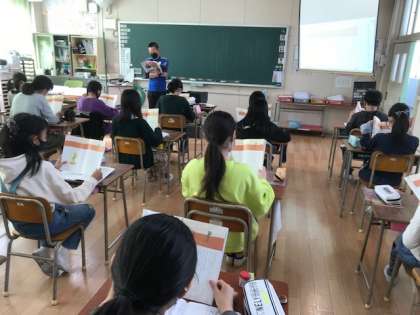 6年生の国語科で、「サボテンの花」という物語を音読していました。はっきりとわかりやすく読むのが目標です。その後、サボテンの生き様について考えました。