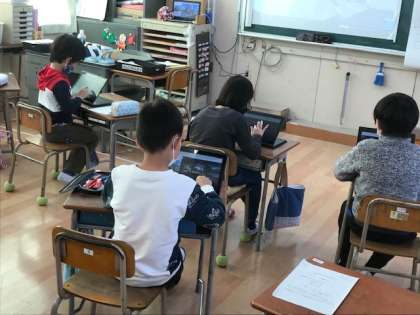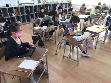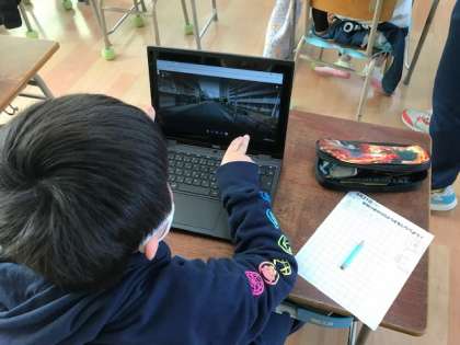 4年生は社会科の学習で地域の様子を学習します。学習端末のpcを使い、ストリートビューで池島地域を探検していました。