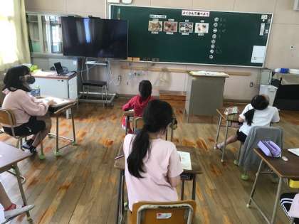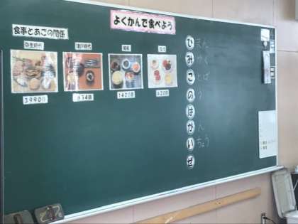 4年生の食育の授業を受けていました。よくかんで食べるためにかたい食べ物を探していました。キャベツは意外とかたいです。
