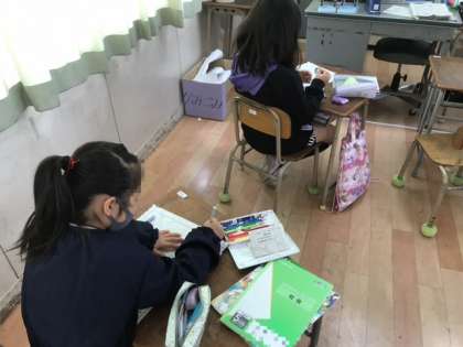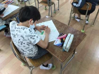 3年生は、池島地域の地図に色を塗っていました。住宅地、お店、公園と色を分けていました。