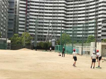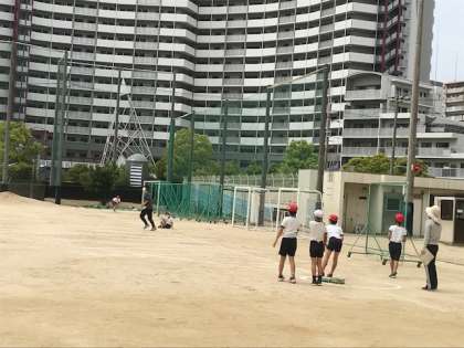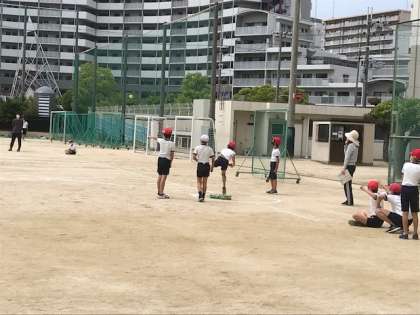 登校した子どもたちは体力テストに挑戦していました。ソフトボール投げで遠くまで投げていました。
