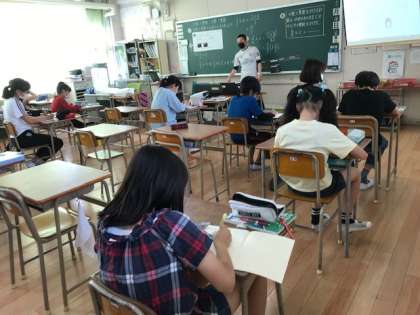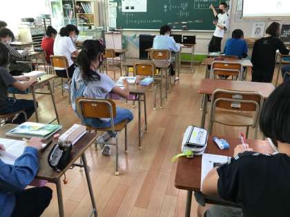 6年生は算数の時間に分数のかけ算を考えるために、文字式を使い学んでいました。数学の基礎ですね。