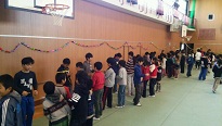講堂で待っている6年生のところへ行き、じゃんけんに勝ったらサインがもらえます。
