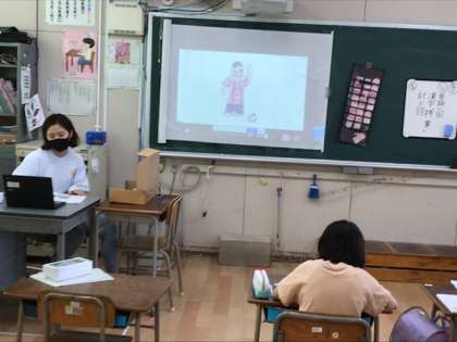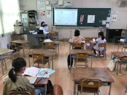 3年生は、道徳の学習です。デジタル教科書の読み上げ機能を使い、全文を読んだあと、オンライン参加の子と教室の子で意見交換をしました。