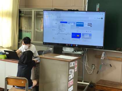 >  4年生は、総合的な学習の時間です。前回の続きでjamboardを使ってプレゼンテーション作りをしていました。