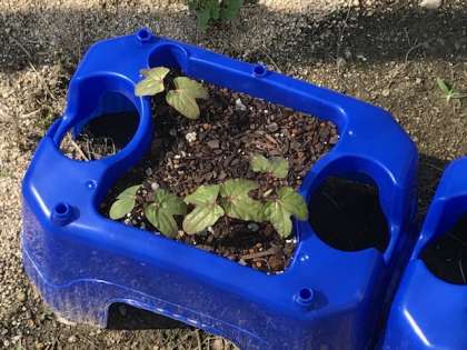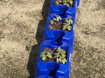 1年生が種まきをして毎日水をあげているアサガオが双葉を出しました。ぐんぐん大きくなるといいね。