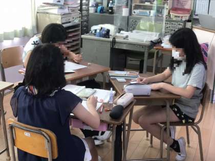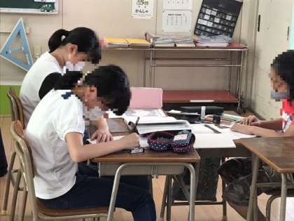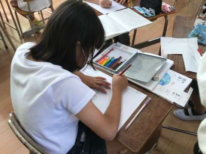 6年生が調べていた自然災害について班ごとにまとめの作業をしていました。各班とも見せたいポイントを決めて作成していたようです。