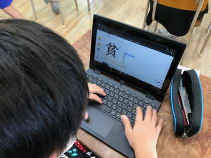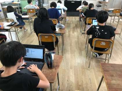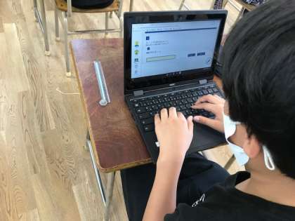 5年生は、テストの時間です。テストを提出した子は、読書やデジタルドリルをしていました。キーボードを両手で操作していることに驚きます。