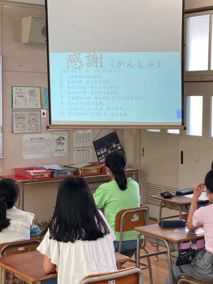 今朝の朝会では、「感謝」についてのお話でした。感謝を表す言葉は「ありがとう」です。その言葉がたくさん出るように気をつけたいですね。