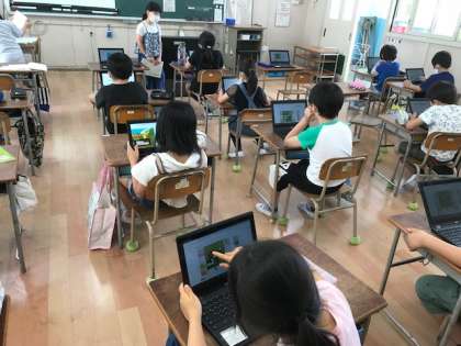 3年生がコンピュータを使っていました。オセロやパズルをしていました。こうやって扱いに慣れていくのですね。